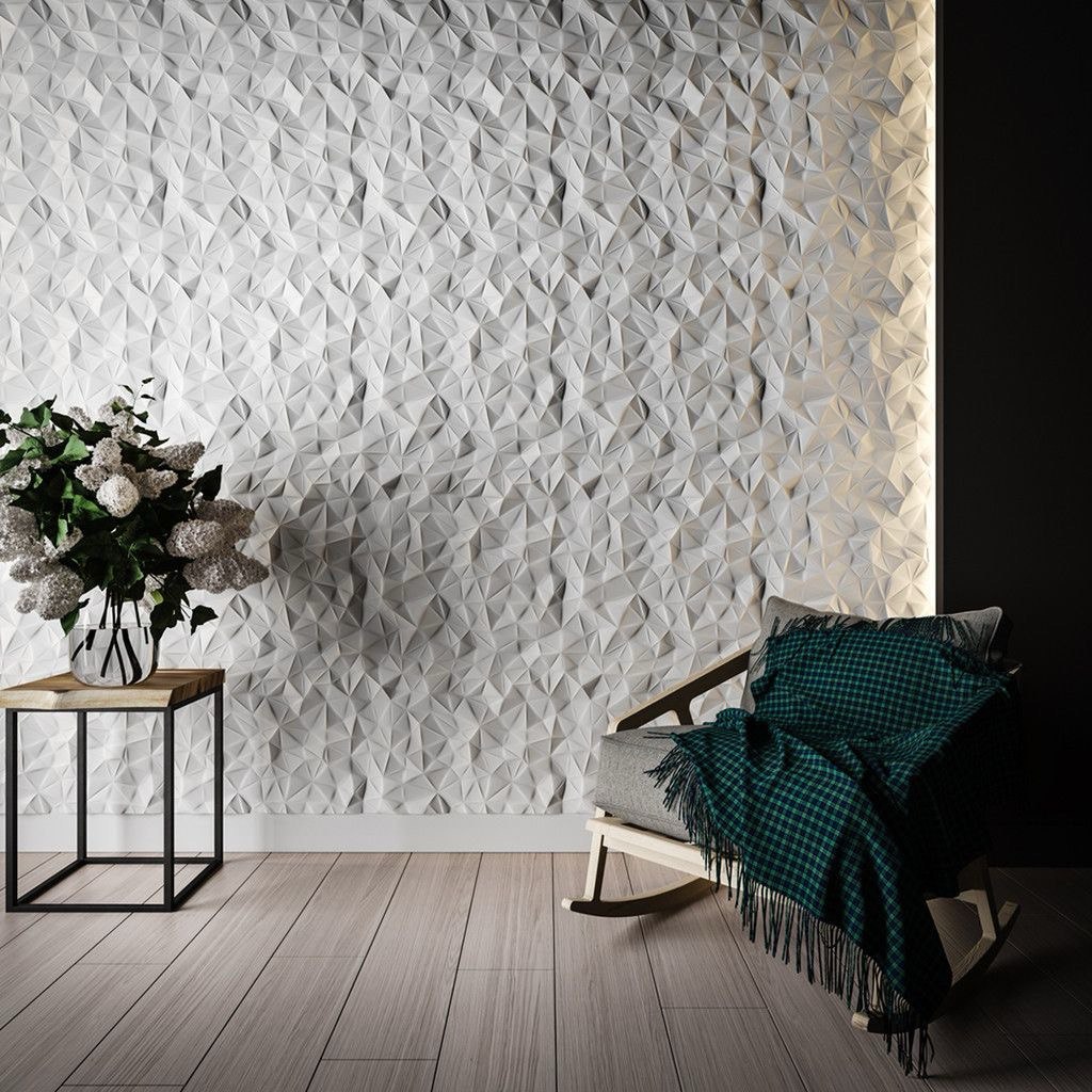 3D панели «Жатая Бумага» поражают воображение причудливым переплетением плавных линий. Объемный рисунок создавался как шикарный декоративный элемент для современного интерьера. Он отлично впишется в минимализм, хай-тек, урбан, конструктивизм и экологические направления. Рельефность, пересечение острых граней в сочетании с плавными переходами уровней создают множество полутеней, придавая панели выразительность.