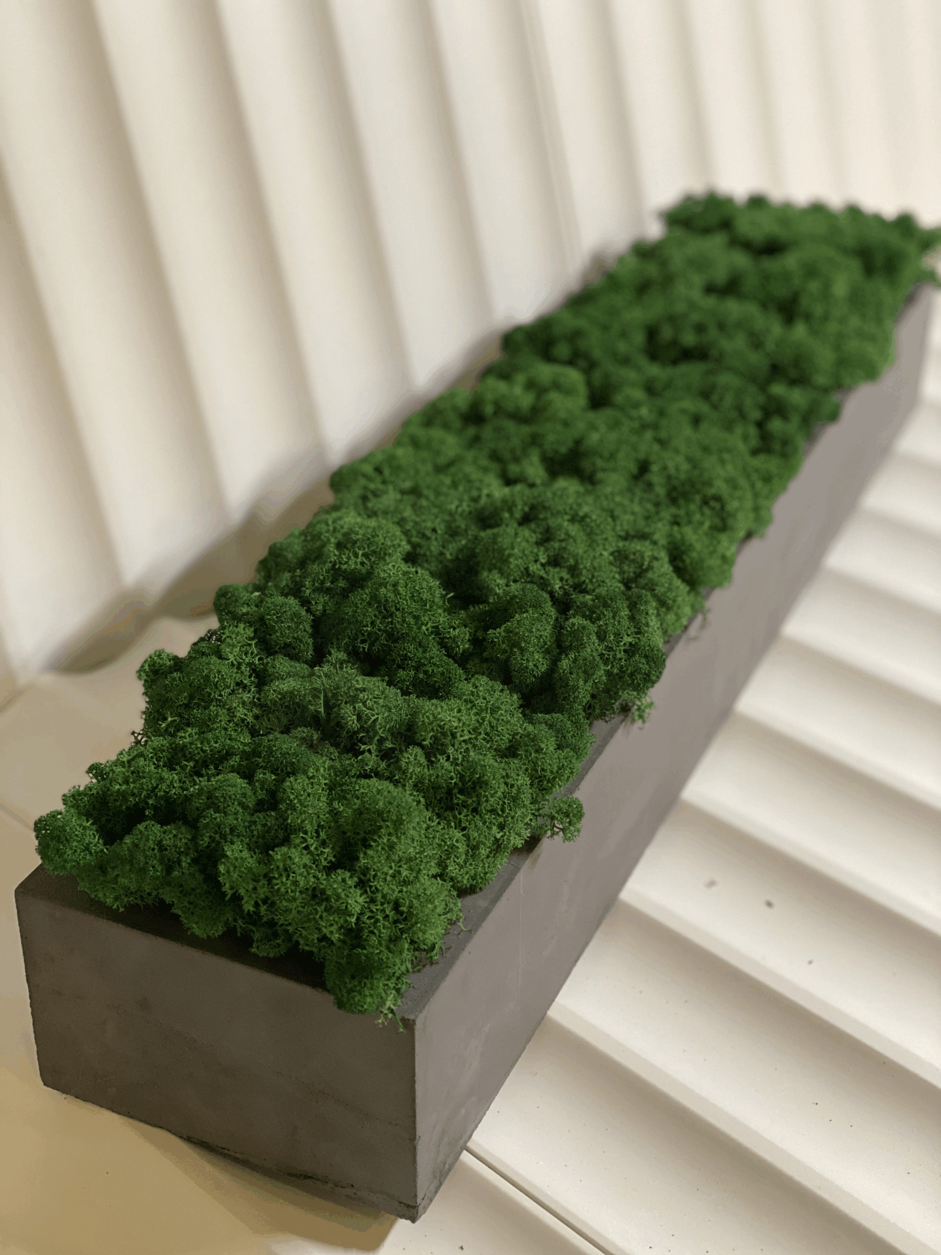 Бетонное кашпо с стабилизированным мхом — новаторский метод обновления интерьера. Тренд последних лет.