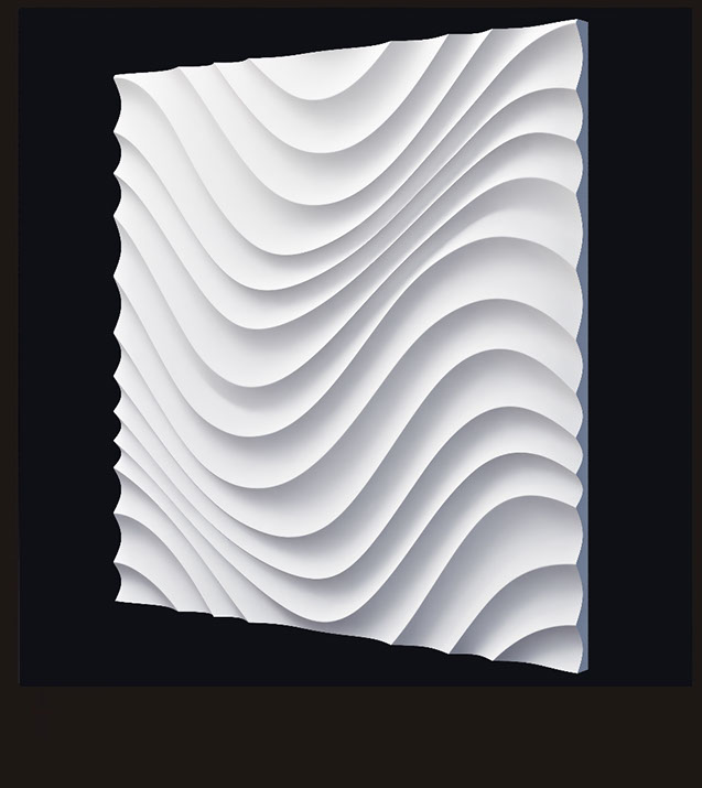 Гипсовая декоративная 3D панель «Гребешки» является трендом в современном дизайне интерьеров. Множество поперечных волнистых линий создают оригинальную фактуру, которая гармонично сочетается с блестящими мраморными поверхностями, стеклом и металлом. Дизайнеры активно используют эти панели в комбинации с деревом, что добавляет особый уют в помещение. Панель «Гребешки» идеально подойдет для оформления спальни, гостиной или гостиничного номера, а дополнительная подсветка усилит эффект игры теней.