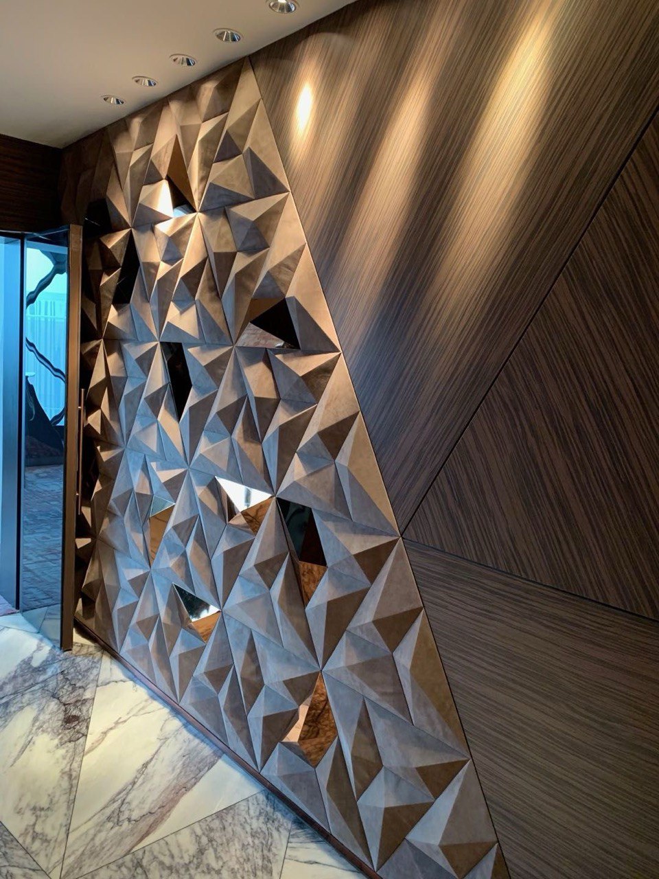 - Тип поверхности: Многослойный рельефный орнамент с геометрическими линиями.