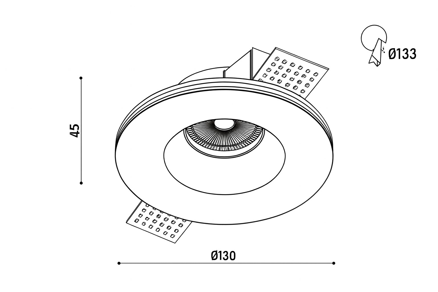 Гипсовый точечный встраиваемый светильник SV-001 белый для гипсокартонных потолков.