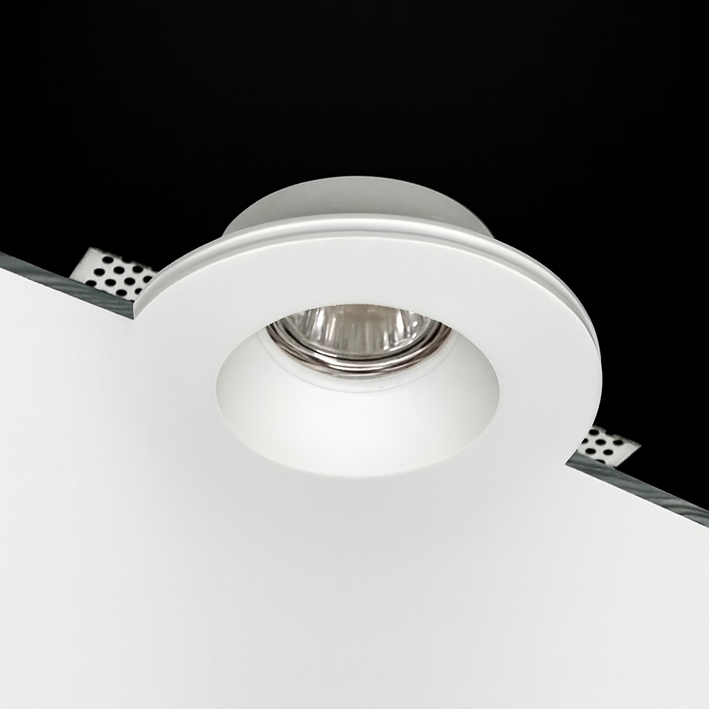 Стильный и практичный точечный светильник для гипсокартонных потолков. Выполнен в белом цвете, гармонично вписывается в любой современный интерьер. Гипсовый корпус под покраску/шпаклевку позволяет адаптировать внешний вид светильника под стиль помещения. Не поворотный плафон, поэтому учитывайте направление света при выборе размещения.
