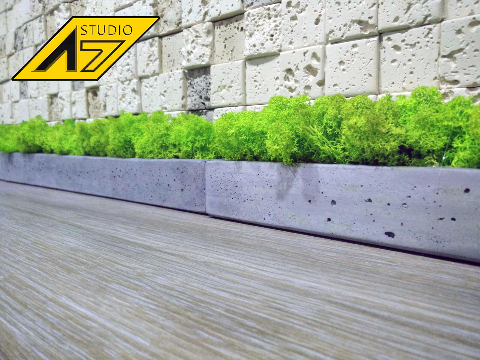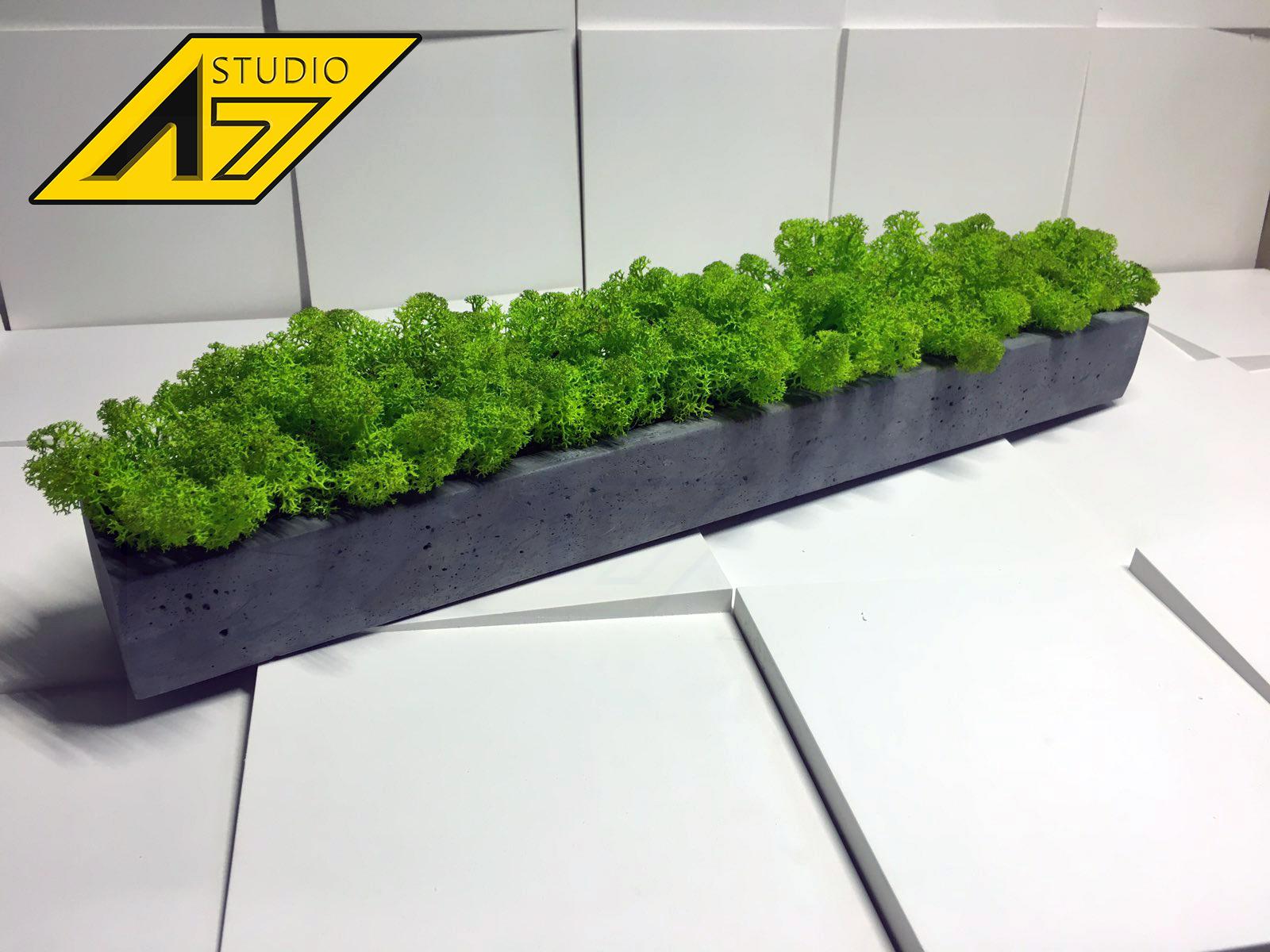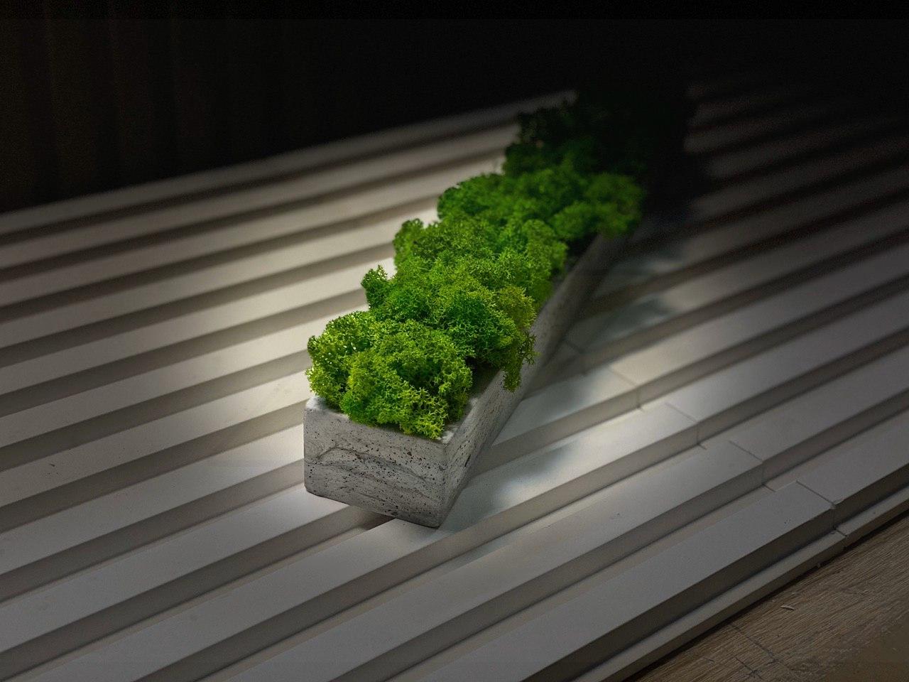 Кашпо из гипса с скандинавским мхом ягель Gray 500х70х50мм