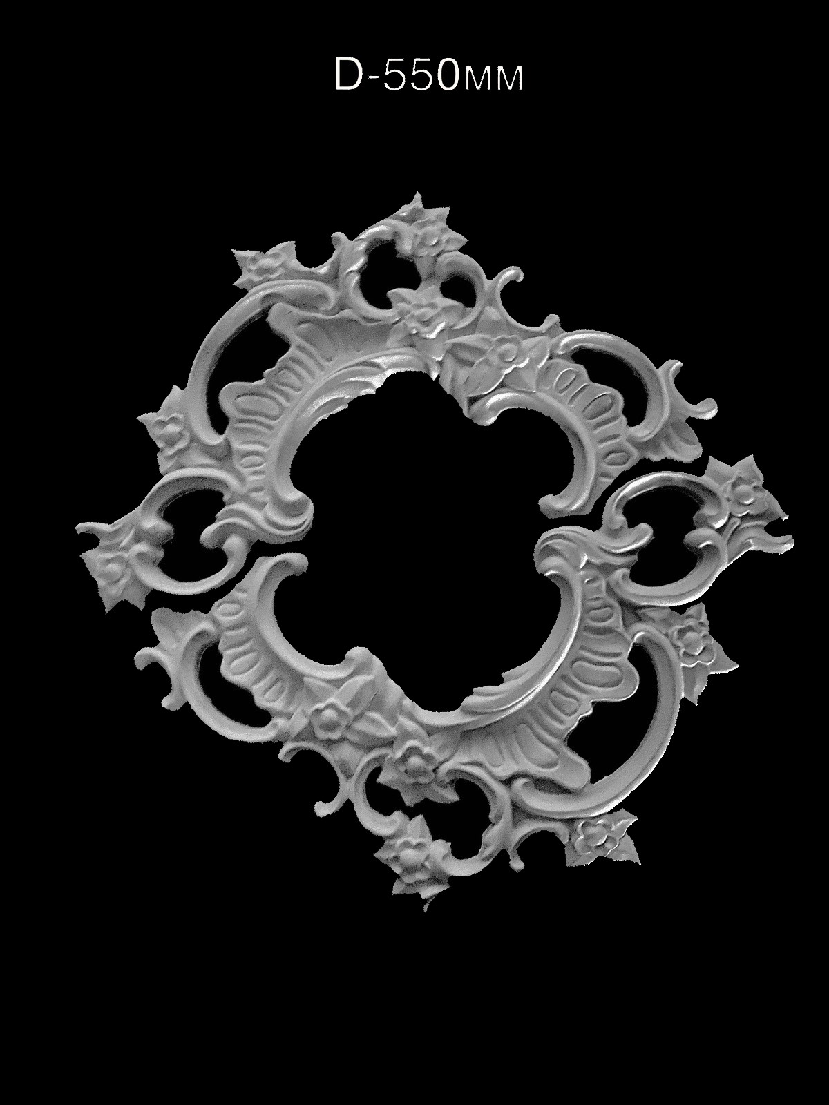 Розетка потолочная из гипса Р-10 диаметром Ø550 мм — это изысканный элемент декора, который, безусловно, привнесет классический шарм в ваш интерьер. В первую очередь, данная розетка с круглой формы гармонично вписывается в различные стили, включая классику, арт-деко, модерн, эклектику и даже минимализм. Таким образом, она идеально подходит для создания уникальной атмосферы в любом помещении.