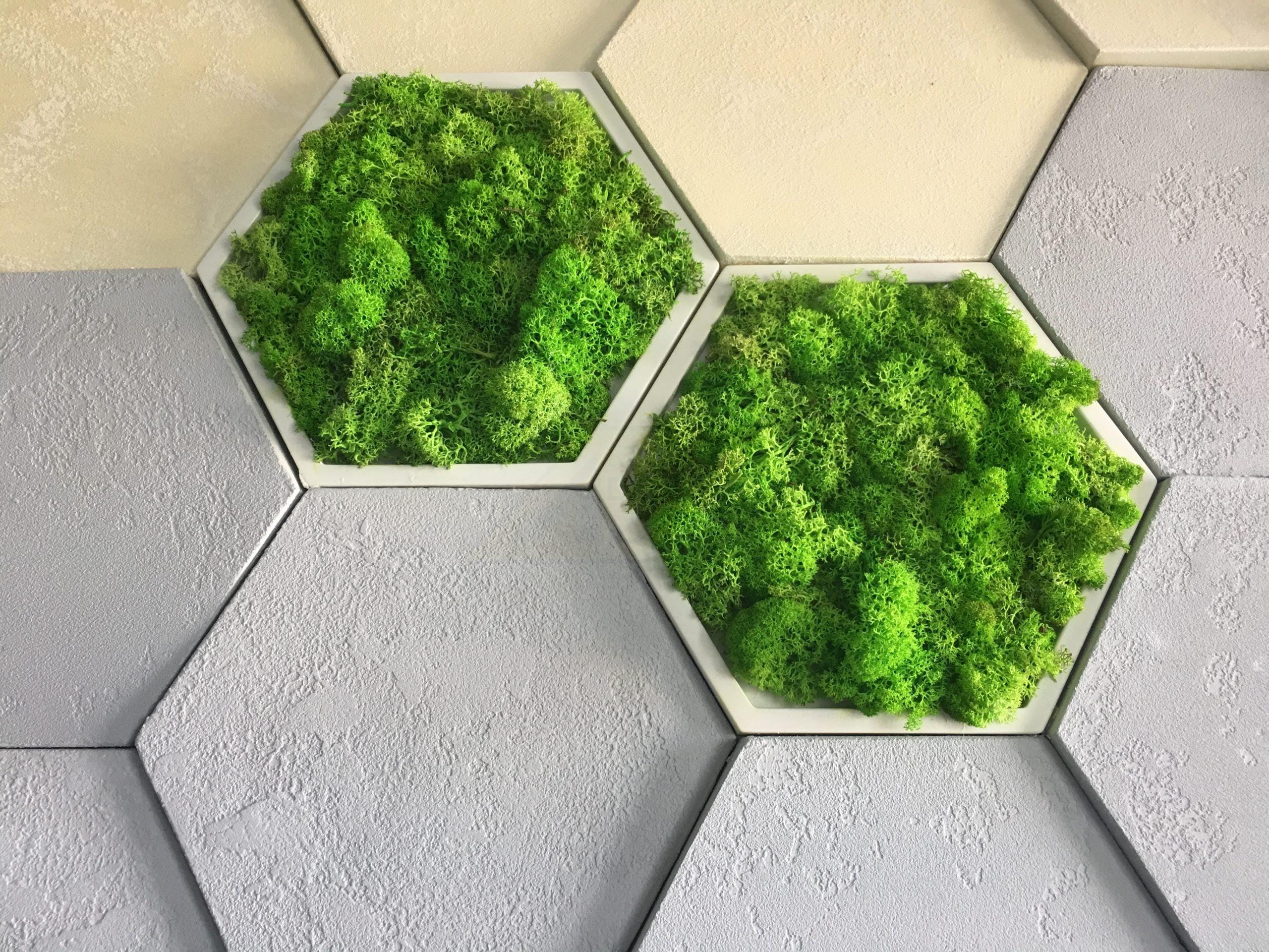 Стабилизированный мох в сотах из гипса новаторский метод обновления интерьера. Тренд последних лет.